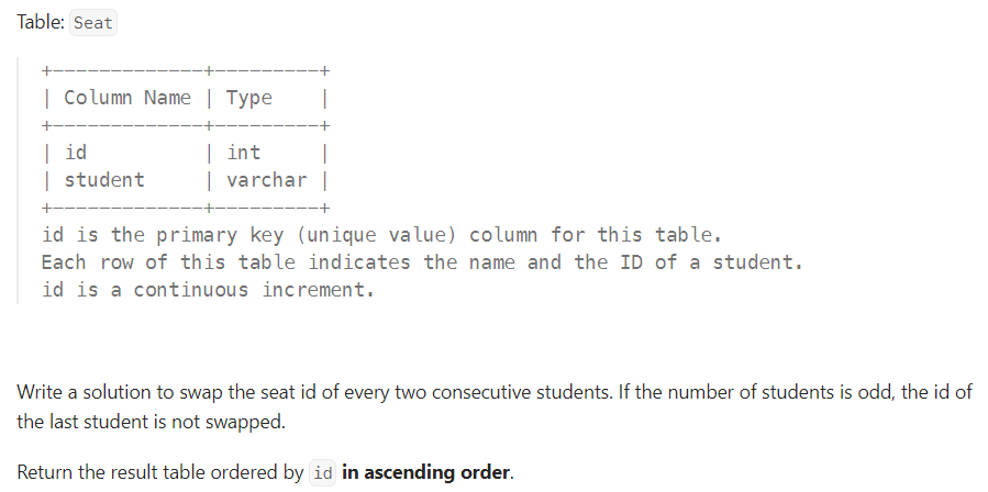 Leet Code #626. Exchange Seats