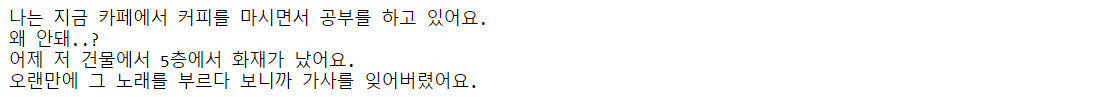예시는 영어로 있어서 한국어로도 실험해봤는데 맞춤법 잘 틀리는 사람들보다 훨씬 잘한다!!