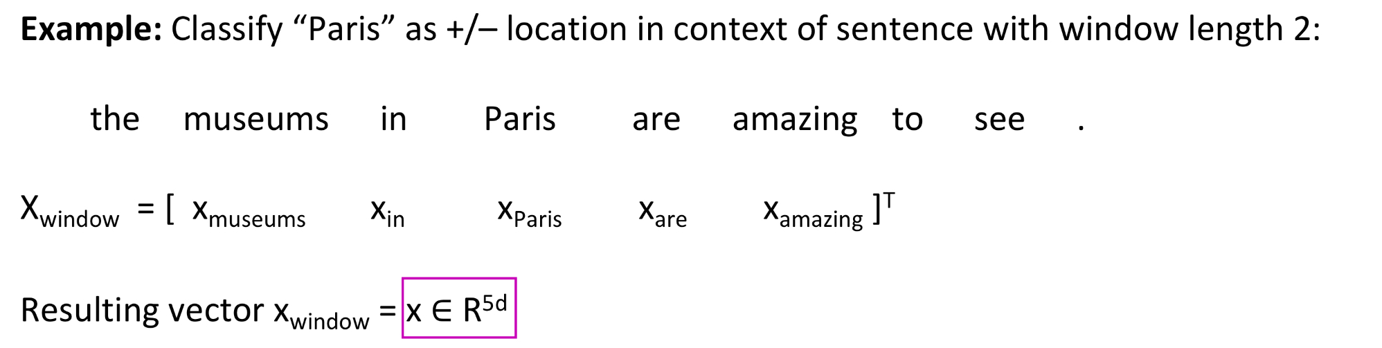 → Idea : 이웃하는 단어들, 문맥 윈도우를 이용하여 각 단어들을 특정 카테고리로 분류하는 것