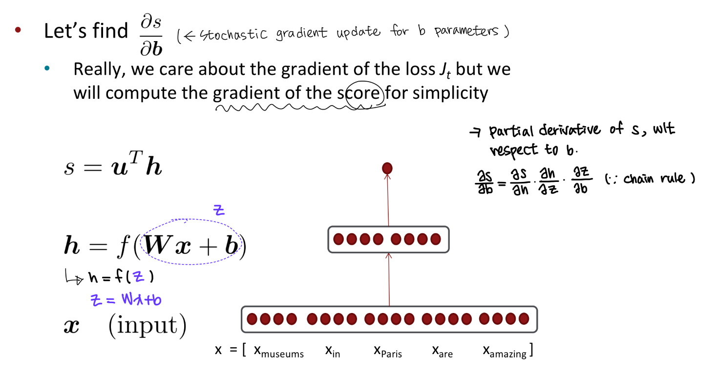 계산의 간소화를 위해 score의 b(bias)에 대한 gradient를 계산해 보겠다고 한다.