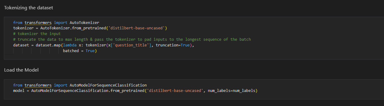 토큰화와 패딩을 해주고, 사용할 베이스라인 모델도 불러와준다.