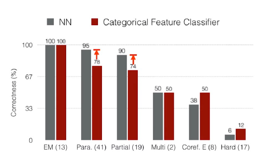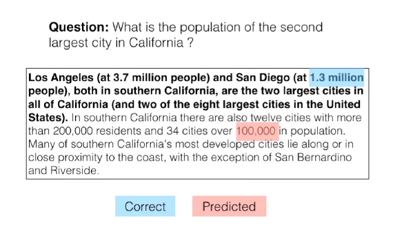 SQuAD는 여전히 QA 데이터로 활용하기에 한계가 존재한다. Question은 span select로 answer을 모델이 출력할 수 있도록 하는 범주의 질문으로만 작성되어야 하고, 크라우드소싱으로 질문을 human이 만들 때 passage를 기반으로 만들기에 단어 자체가 매우 겹치도록 만들 수 밖에 없다.