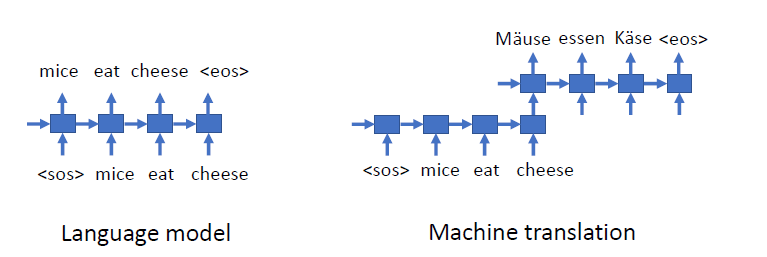 - RNN LM을 확장시킨 대표적인 예시 : 기계번역!