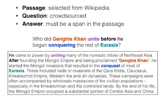 QA Dataset을 만들었고, 이 데이터셋이 "Stanford Question Answering Dataset" (이하 SQuAD)이다.