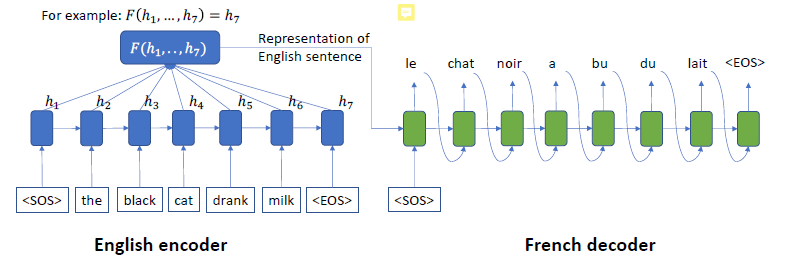 - 하지만 기계번역은 1언어에서 2언어로 번역될 때, sequence의 길이가 다르기 때문에 그 different sequence length를 처리할 수 있는 모델이 필요함