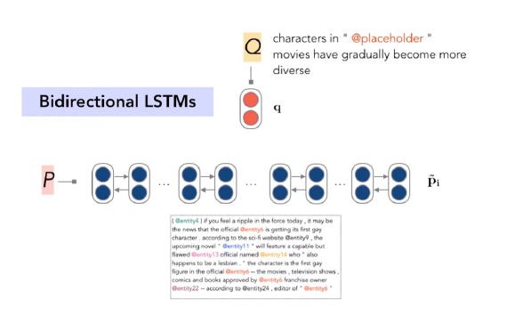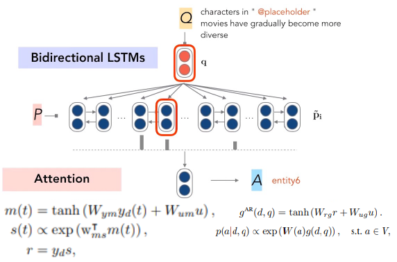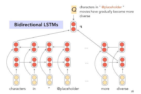 이와 달리 end-to-end neural net으로 학습시킬 수 있는 Attentive Reader의 구조는 아래와 같다.