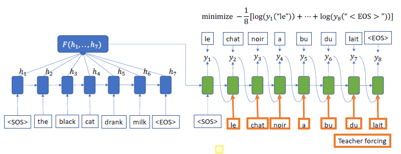 이 과정에서도 teacher forcing (교사강요)를 이용할 수 있다.