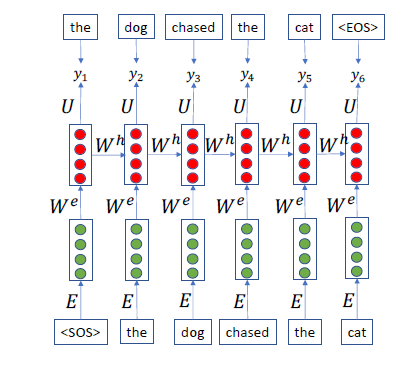 RNN의 특징 : W_e, W_h가 공유된다는 것!