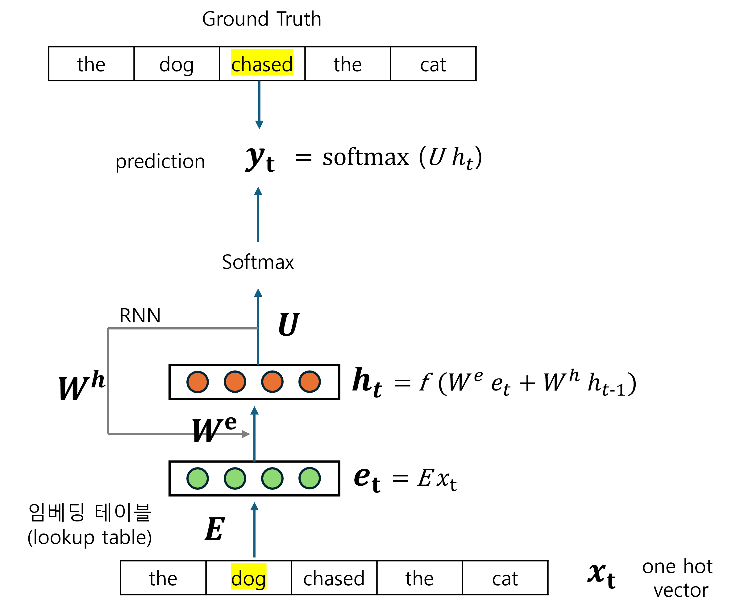x_t 는 [Vocab size] 차원의 원-핫벡터이다.