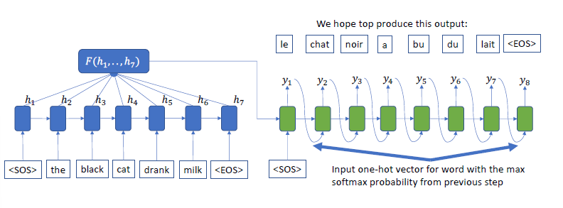 이렇게 2개의 RNN으로 구성된 인코더-디코더 모델을 sequence to sequence model이라고도 부른다.