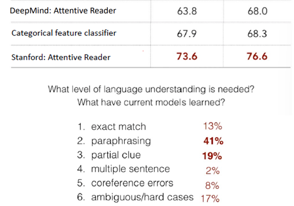 위와 같은 기본적 attentive reader 구조를 토대로 DeepMind Attentive Reader가 2015년에 발표되었고, 이후 attention 연산 방식만 수정하여 나온 것이 Stanford Attentive Reader로, 2016년에 발표되었다.