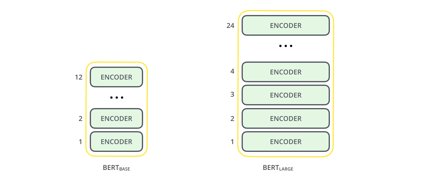 간단하게는, 트랜스포머 인코더 레이어를 12개 쌓았는가, 24개 쌓았는가의 차이이다.