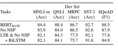 No NSP : MLM 기반으로 훈련된 bidirectional model, 하지만 NSP 태스크로는 훈련되지 않음