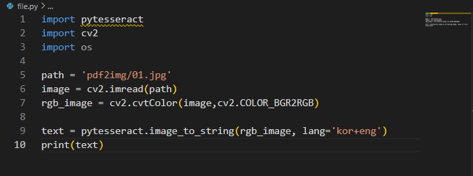 이제 환경 setting은 마쳤으니까 우리의 pdf 파일에 있는 텍스트들을 Tesseract OCR 엔진으로 인식해보자.